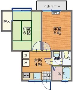 | 間取り内訳 | 和6、洋6、K4帖 | エアコン | 1台付(洋6) |