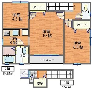| 間取り内訳 | 洋6.5、洋4.5、LDK13帖 | エアコン | 1台付 |