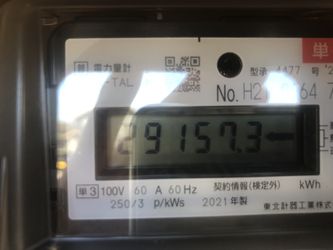 | ↓2022.6.30の15時現在 メーター値で98117kwhでしたので、売電は1369kwhです。 | ↓2022.8.1の10時現在 メーター値で00145kwでした。スマートメーターになりました。 |