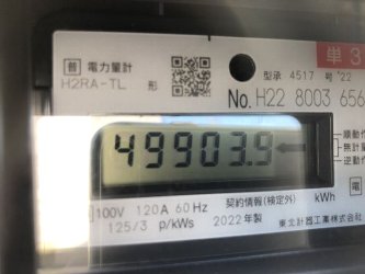 | ↓2022.11.301の14時現在 ヴィラ10の売電メーター3957kwh(今月売電1030kwh)です。 | ↓2022.12.31の14時現在 ヴィラ10の売電メーター4393kwh(今月売電436kwh)です。 |