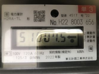 | ↓2022.4.30の14時現在 ヴィラ10の売電メーター160800kwh(今月売電1974kwh)です。 | ↓2022.5.31の14時現在 ヴィラ10の売電メーター162931kwh(今月売電2131kwh)です。 |