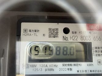 | ↓2025.12.1の10時現在 ヴィラ10の売電メーター51988kwh(今月売電981kwh)です。 | ↓2026.1.5の10時現在 ヴィラ10の売電メーター52520kwh(今月売電532kwh)です。 |