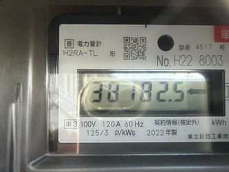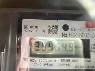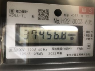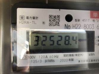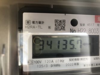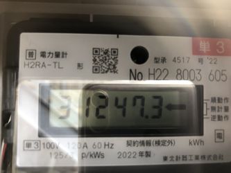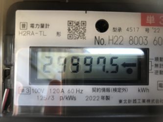 | ↓2022.8.1の10時現在 ヴィラ11の売電メーター122120kwh(今月売電1518kwh、計画比141%)です。今月の日照時間は平年比131%でした。 | ↓2022.8.30スマートメーターへ交換。最終メーター値23189です。 |
