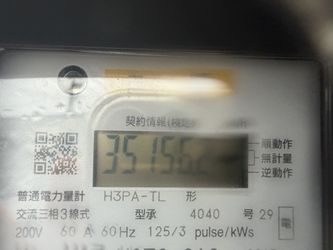 | ↓2023.8.31の14時現在 ヴィラ7メーター値で12443kwhでしたので、売電は2289kwhです。 | ↓2023.8.31の14時現在 ヴィラ8メーター値で90kwhでしたので、売電は90+前メーター最終値kwhです。スマートメーターへ交換しました。 |
